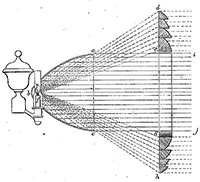 In 1822, Frenchman Augustin Jean Fresnel (pronounced freh-nell) designed a superior lighthouse lens system that used glass prisms to bend and focus light. By surrounding the light source, a Fresnel Lens was able to capture and focus at least 80% of the light and project it more than 20 miles. Lenses were classed based upon the distance of the light source to the lens. The sizes ranged from the largest first order to the smallest sixth order.