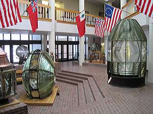 The atrium is home to eleven 1st through 6th Order Fresnel Lenses and is the most complete collection of such lenses on display in the United States. Click on some of the numbers below for an image and description.